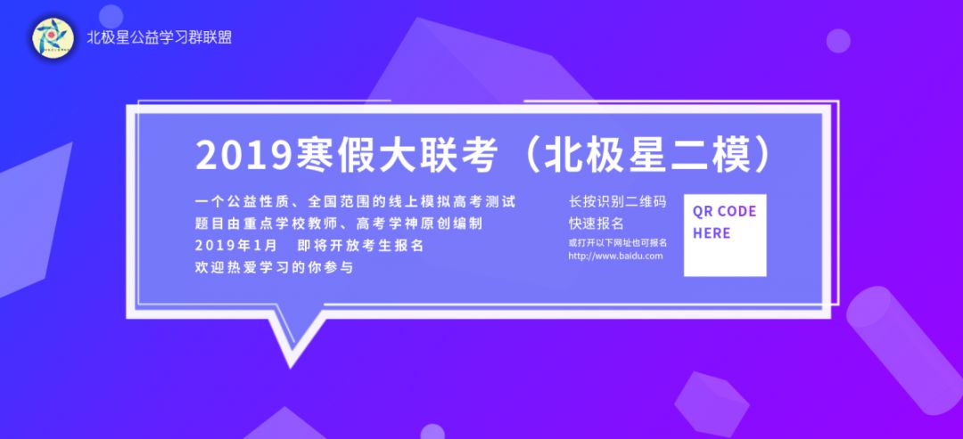对了,可能看到这里的你很想找一份卷子来看,但受出题人建议,我们暂时不公开试卷,您也不太可能在百度上搜到北极星公益学习联盟的相关信息,毕竟他不是一个认真的搜索引擎。北极星大联考每到暑假、寒假都会举办一次,如有意参加,欢迎持续关注我的消息。