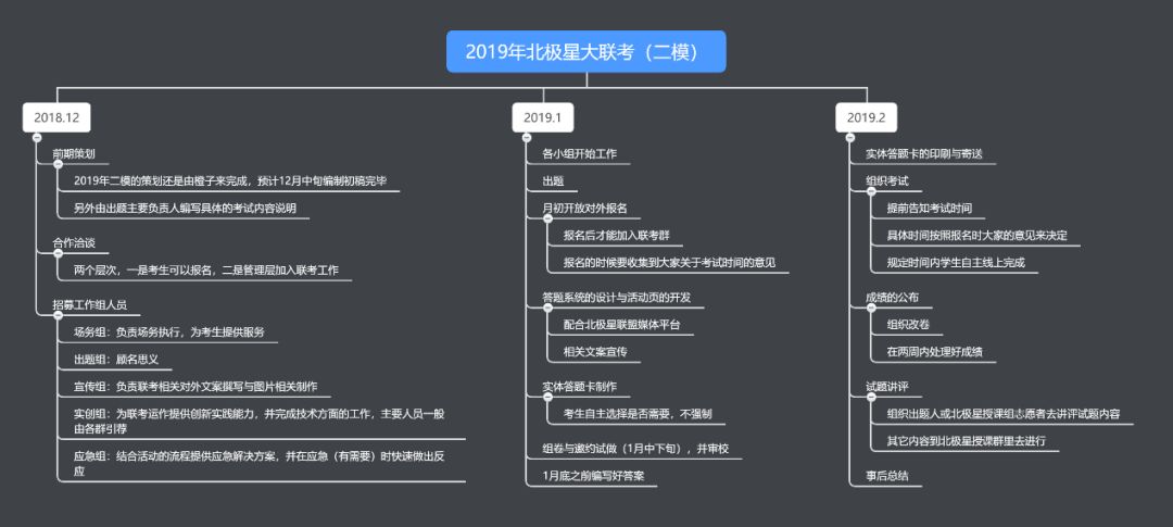 那时,圈主一职刚刚因为软件被央视点名关停而再也不回,原有在社区交流的精力恰好可以搞点事情。在北极星和学科社高管的鼓励下,我开始进行了第一次大联考的策划,就从一张空白的文档打起,一个人写出全套的运作方案,当然包括文案、考试系统,等等。