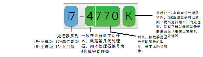 以酷睿为例(一般是以i开头的CPU),来讲一下他们的编号规则: