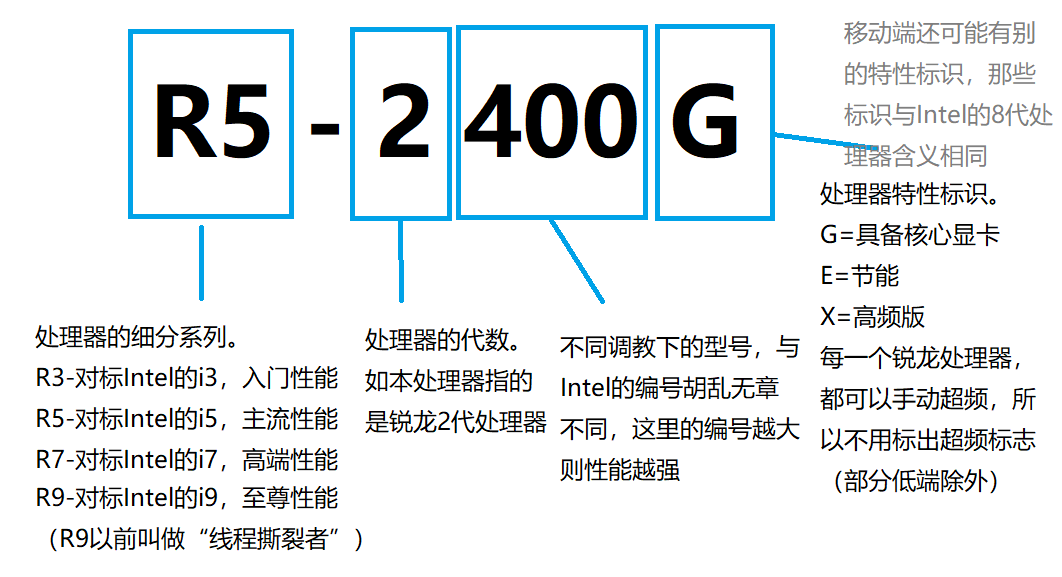 主流型号比较单一。目前普通消费者购买最多的是“锐龙”处理器系列。“锐龙”处理器的型号很好识别,因为到今天为止,它就出了3代。如图所示:
