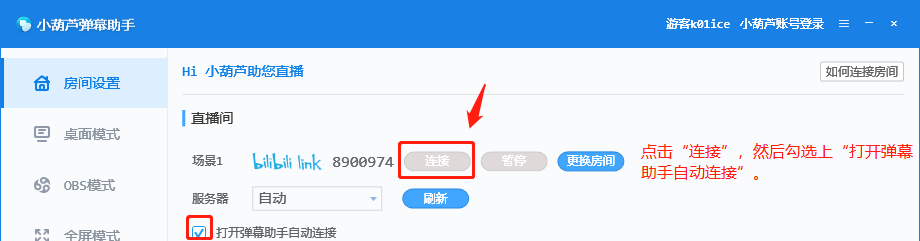 这个直播间编号是固定不变的。然后你会看到一些新手引导,看完了以后在“房间设置”里先按下图所示操作到位: