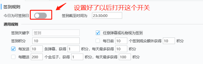 在“小葫芦弹幕助手”里面有一个“签到积分”的功能,合理利用这个功能可以让学生进行打卡签到。这是我的设置,各老师可以根据实际想法来进行个性化设置。