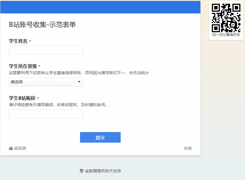 不过,你可能会有所疑问,学生的B站账号名字都不是真名了,如何实现对应关系呢?答:在第一次上课之前,开一个表单收集学生的B站昵称就可以了。参考如下: