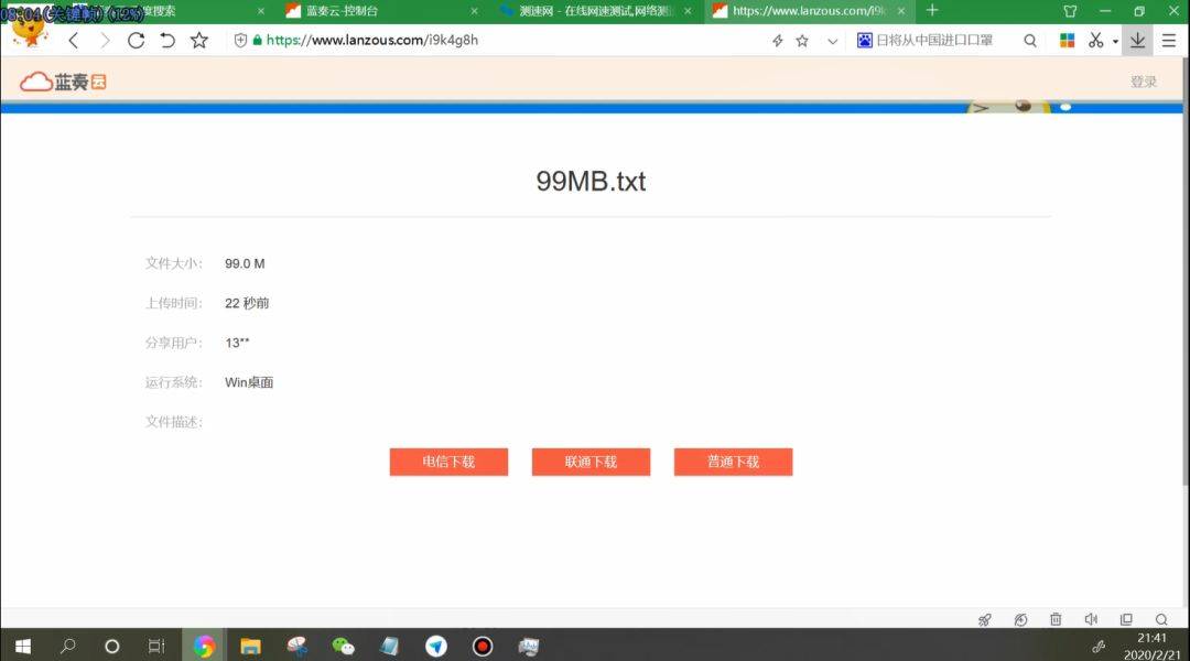 另外,其共享的下载次数是没有限制的——即便其告知我们不能频繁下载大文件——这只是对于单一用户来讲的,换个浏览器打开就可以反复下载了。总的来说就是“正常使用无限制”。这是它较“奶牛快传”的优点吧。