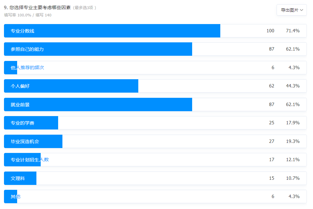 然而,当我看到这个调查结果时,我明白,因为分数,各位的专业与梦想可能就失之交臂。也有相当一部分同学其实是不知道自己的喜好是什么(所以才会用各种速成工具嘛)。