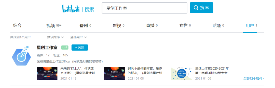 方法一:B站搜索用户“星创工作室”,可见相关视频