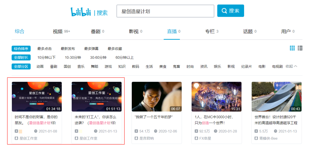 方法二:B站搜索视频,关键词是“星创造星计划”,可见相关视频