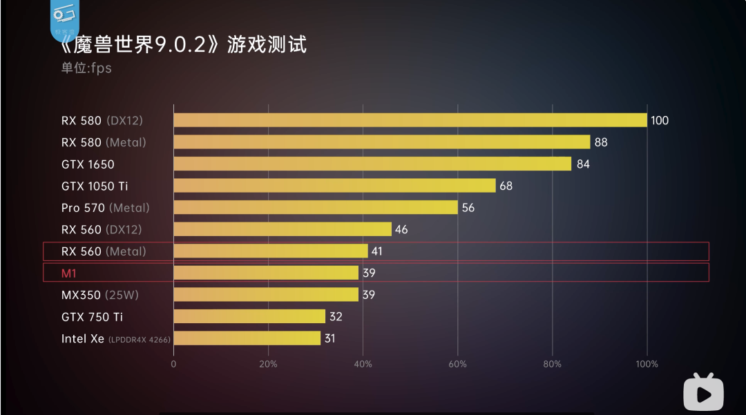 更不要谈苹果这一套跑游戏的底层系统都没有windows高效了。(截图来源于极客湾的M1大测评)