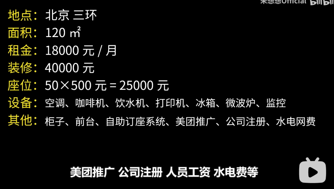 如果真的如此,那么单店利润就可以做到一个月6561.6元(假定60%上座率下,一个座位单日可以收入20元),而且8.5个月就可以收回成本,这还是没有考虑可以吸引办年卡来快速回笼资金的情况...