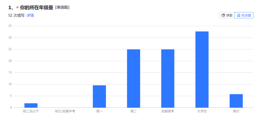 与繁星群定位为服务高考有强关联性,大部分填写者为高二、准大一和大学生,满足预设。