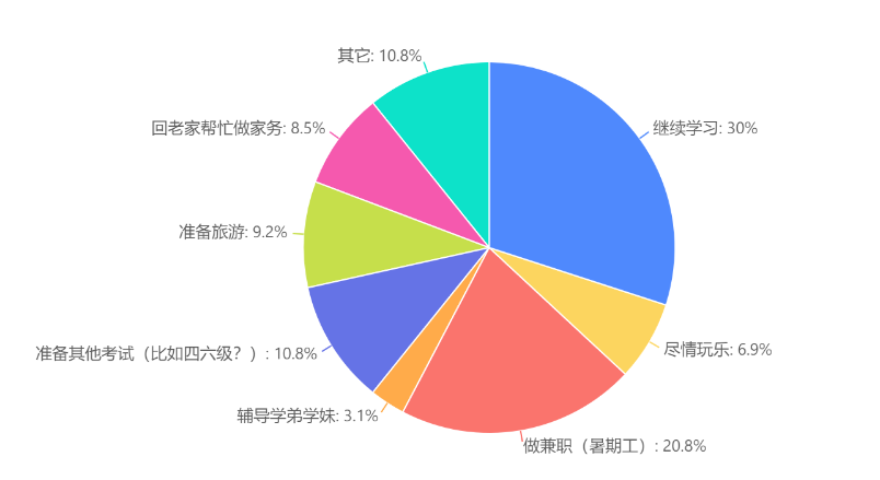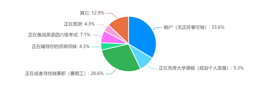 可以看出,更多人实际上并没有在暑假做任何事情,很多人处于躺尸状态,真正有在学习的比例不到20%...