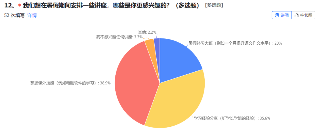 为高效、有针对性地准备暑期活动,我近期进行了关于应届高考生心态、群员希望在群里办什么活动的调查。本次调查主要在繁星学习群里进行,回收有效样本52份。