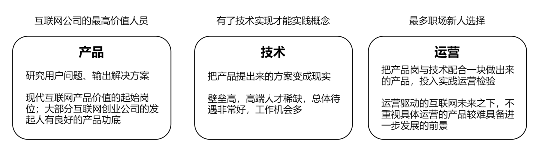 产品、技术、运营三大互联网岗位职能简述。