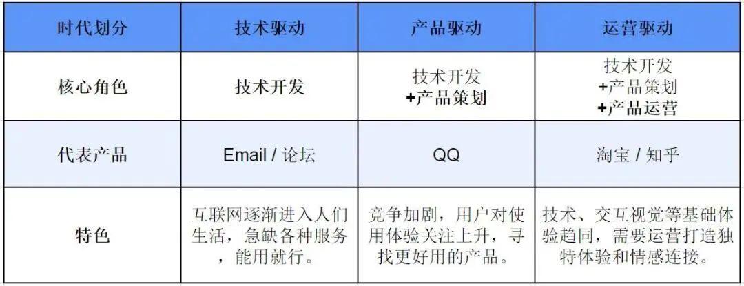技术驱动、产品驱动、运营驱动下的产品对比。表格来源于[1]