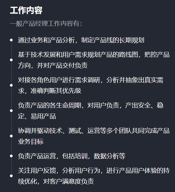 这个板块里还有许多其它赛道,但它们的特点都是直接为产品的实际运行内容(指标)负责,如果想了解其它赛道,那一般是考虑怎样结合自己的兴趣爱好进入。