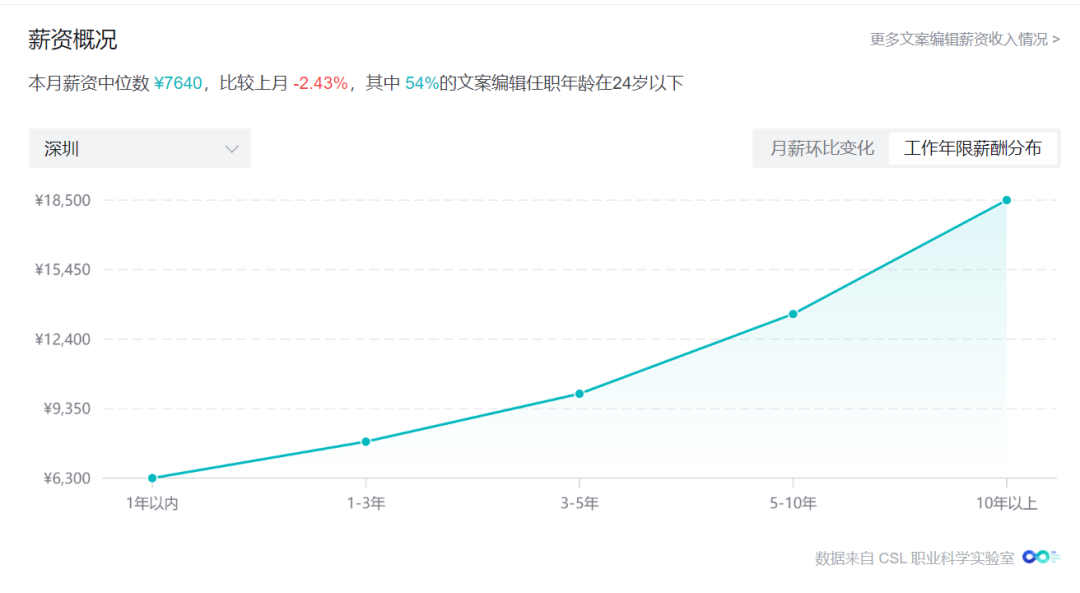 以文案编辑为例的薪资情况:
