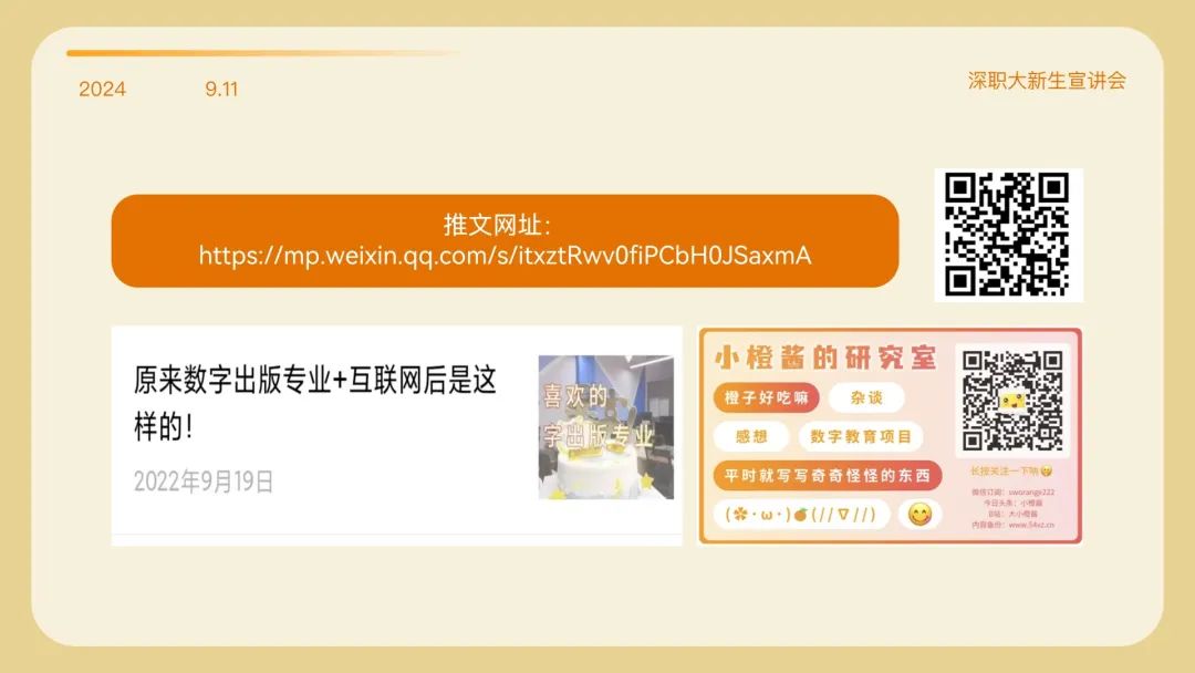 数版专业,是你发展的舞台——2024年专业新生大会演讲全稿 1 年 前 阅读量: 134 我是一位做职业院校课程开发的项目经理,这个职位的目标是将关于课程建设的愿景,通过合理的项目筹划,配合老师的想法来逐步变成在网络上可以看到的各种课程,这种课程,一般称为“在线课程”。 大家现在所看到的这些课程皆是我主持开发的。老师们没有足够的时间和精力去参与开发课程,所以目前很多学校会选择把课程开发这件事情交给专业的公司来做。 之所以选择了这个工作,跟我经历过的生活和学校的专业是分不开关系的。 我在初中与高中之交,大概是因为厌倦了在学校,或者说是现实世界里的生活,开始在一个在线学习社区上面频繁活动。那个时候虽然在高中住宿,不给带手机,但是大家都会带个手机。别人带手机进去,可能是为了聊天、打游戏,我就一定是拿手机在写方案、写文章。 晚自习上完就已经9点半多了,除开洗漱的时间,我又是一个贪睡的人,必须要早睡,第二天7点起床的时候才有精神,我是靠着每天挤出来这样一点时间,栽培出来,在那个已经消失的平台上,做到了还不错的影响力,还在那个时候就拿到了今日头条APP的优秀创作者认证。 这样不知不觉就积累了两三年一些运营、文案和管理的经验。 那个时候,网络上没有多少闲人,大家都比较遵守平台的秩序,对于内容创作还有运营管理的人来讲,是一个很好的环境。那时的我觉得自己做的还可以,虽然不能谈遥遥领先,但我想,我一定是找到了自己感兴趣的方向。 有得必有失,但失并非失。刚才说过这一切看似很美好,但有些老师还有家长对我说,我这么做,自然会有代价。他们觉得我在应试教育的背景下,高考“没有考的那么好”,来到了深职大这个专科专业,后续怎么会有发展前景?他们说,谁愿意要一个毕业生去做管理?线上社区运营得再牛逼,能换到线下运营牛逼吗?写的那些文案大多都是借鉴别人的,以后怎么写的下去呢?等等。 那个时候的深职大,还没有几个本科专业,所以还叫作深职院。其实,我那个时候也多少是有点不甘心进到深职大的。 那时的风评,对这个学校是两极分化的评价:有人说这个学校是专科,毕业出去后肯定是找不到工作。但有人说,专科那又怎么样,出去工作能不能做的好,还是要看个人实力。我又知道,我家庭条件并不能太支持我复读,所以既然深职大录取了我,而且专业也并不是调剂来的,也比较符合我的个人想法。那就选择来试试吧。 机缘巧合,我在6年前,同样是今天这个特殊的新生大会的日子(2018年9月27日),就坐在了前面第一排,听着郑宇这位优秀的师姐分享她的经验。但我不只是听着了,因为从那一天起我已经有一个特别的任务,那就是给这个新生大会写一篇新闻稿。 非常感谢童老师的爱戴,我记得是在写这篇新闻稿的前后,我们学院的微信订阅号就此诞生。在接下来的一段时间里,我主持学院微信订阅号的运营与团队组建、维护的工作。当时我们就得到了老师的大力支持,以及学校的资源协调,团队甚至有了一个专门的办公室。 当然,我如果就把我们的团队定义为只会做微信订阅号的团队,那就显的有点局限了,毕竟是整个专业的力量都在支持我们,我们也得做出来一些对专业乃至学院其它更有利的事情。我依托以往社区运营积累下来的教学资源,主持了工作室的内部交流会,跟其他各位小伙伴一块去看各种展会,一起拓展自己的眼界;我们还去征服各种跟专业有关的,团队的、个人的比赛,拿到一些奖次;我还跟我现在工作的公司的前身,做了一定程度上的校企合作,也配合童主任的正确指导,在工作室内做了关于中华优秀传统文化的选读。 这些要素累加在一起,当时我跟老师都觉得,这个团队已经可以起一个更高度凝练的名字。经过各成员与老师建议比选而出,今天将准备在这里进行宣讲、招新的星创工作室,就是这个团队起的一个全新的代号。 大家可以看到,学院、专业为了支持我们工作室的发展,特意定制了主题装修,并且采购了一批专门的设备,包括各种虚拟仿真系统、VR/AR教学应用系统、教学一体机,供大家日常进行探究。 那么大家也许会好奇,我是怎么有这种看起来比较明确的个人发展思路的?其实我跟大家在这方面应该没有什么特别明显的认知不同,我觉得我也是走一步、看一步,但是我会多听别人的思考和建议,把旧的认知跟新的情况综合起来变成自己的决定。 因为这个世界它随时都在变,就好像2020年疫情的爆发毁掉了多少人的机会和梦想,你永远无法预测下一步会发生什么,我们也不是有超能力能感知未来一切的人,我觉得走一步、看一步,不想太过于久远的细节,是大家比较切实能做的方法。 但是,这不妨碍我们应该有一个长期的梦想。我的梦想是,在教育行业里面做一款独树一帜的产品。今时今日,我所在的公司有资源,乐意让我和公司都往产品转型,我也非常乐见这一转型能够给公司和我带来的变化,我非常期待可以在接下来几年里给大家展示出振奋人心的产品。 例如,我们近期会建设一个账号矩阵。开始阶段,我们先建设一个,可以给老师作为参考信息使用的媒体产品,后续我们也会做面向学生的媒体产品,这是线上的产品。而我们最广泛触达用户的有形产品,可能会是一间间免费的自习室、研讨室,利用巧妙的线上线下混合布局,用农夫山泉现在低价抢占纯净水市场