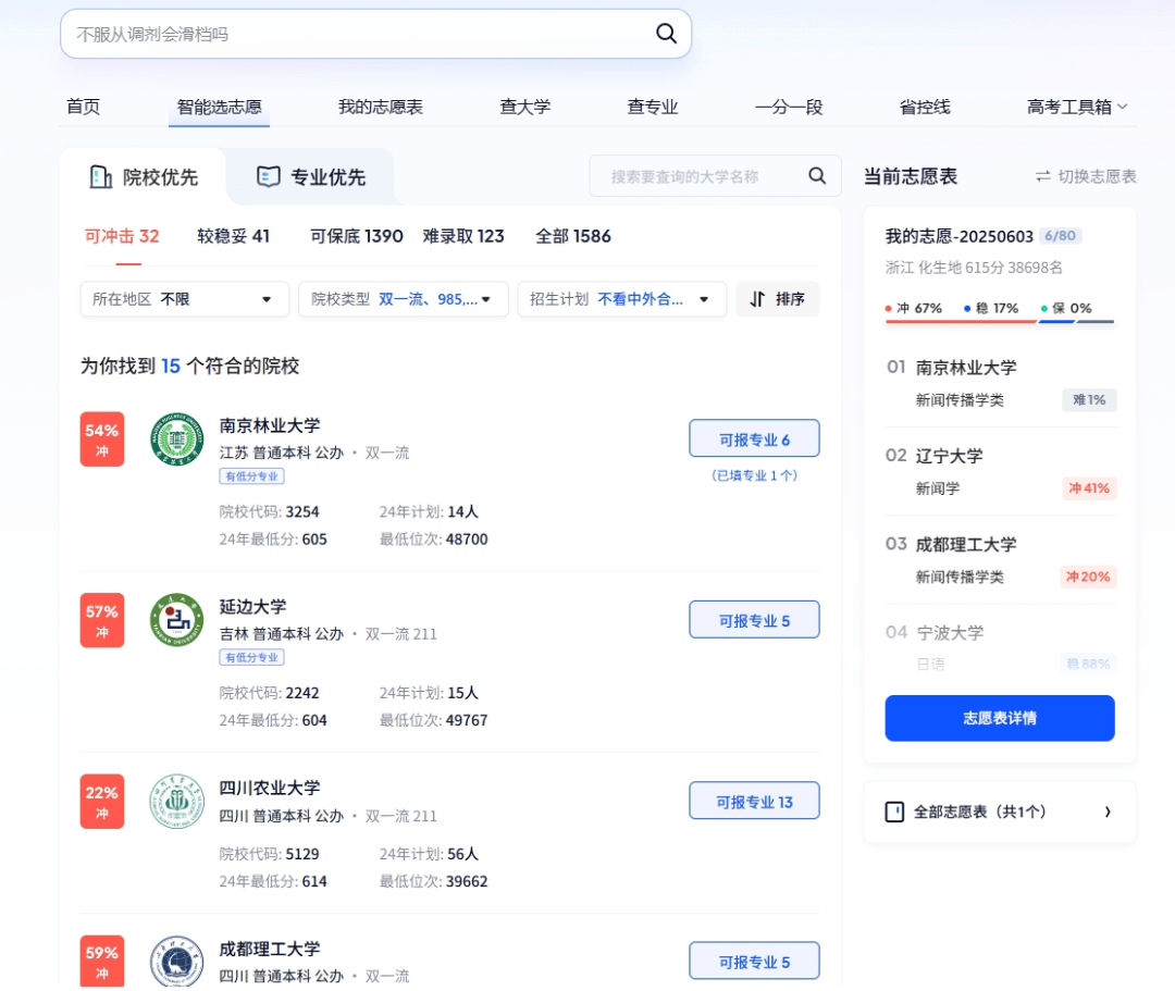 夸克利用“深度搜索”功能做“报考策略军师”。图源网络
